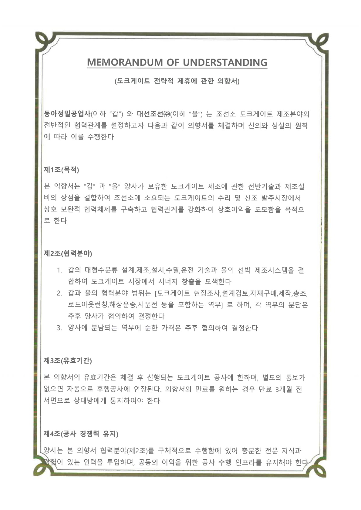 대선조선 MOU체결