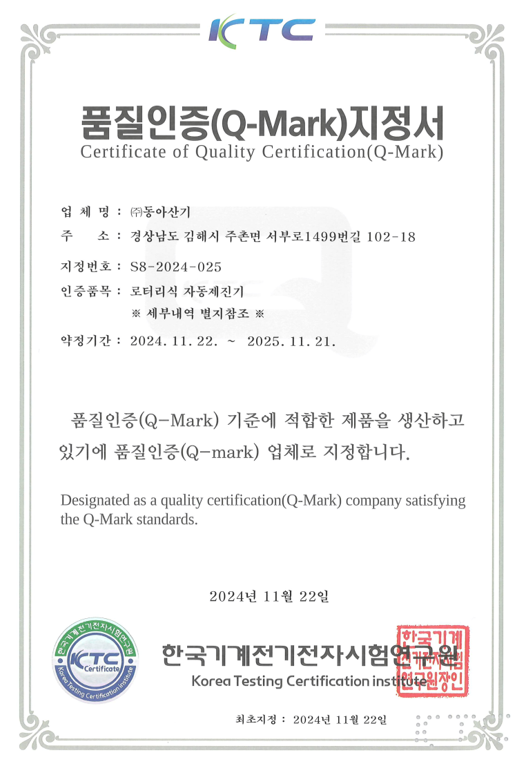 품질인증(Q-Mark)지정서