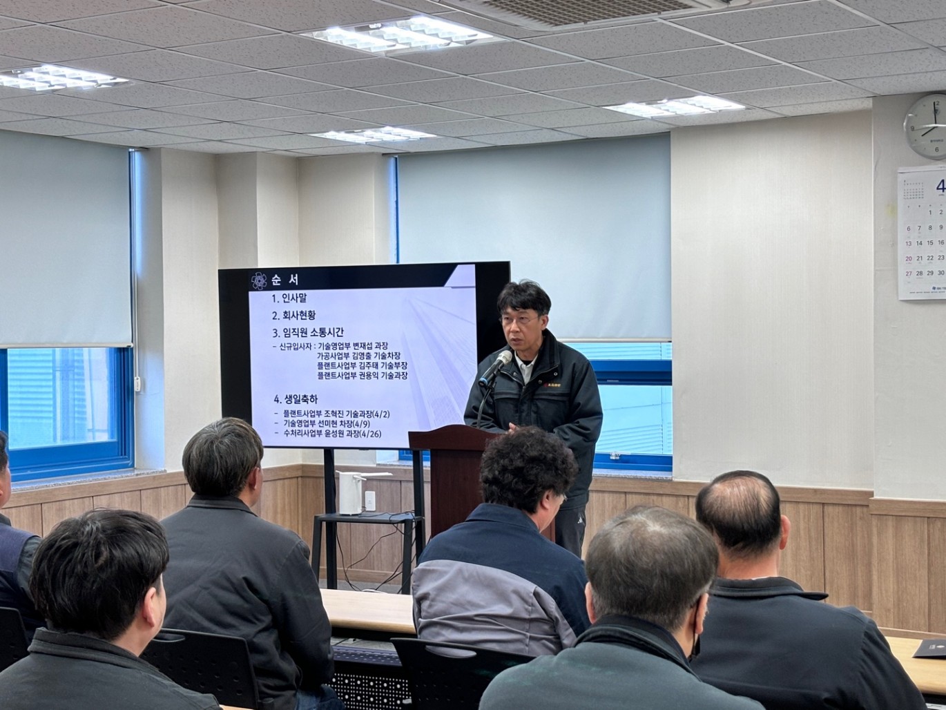 4월 월례조회 페이지 정보 작성자 Admin 작성일25-04-07 14:07 이전글 다음글 목록 본문 <행사순>1. 인사말2. 회사현황 3. 임직원 소통시간- 신규 입사자 소개4. 생일축하 이전글 다음글 목록