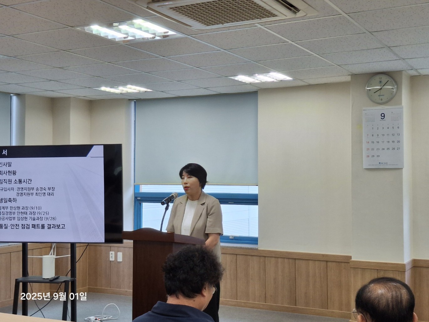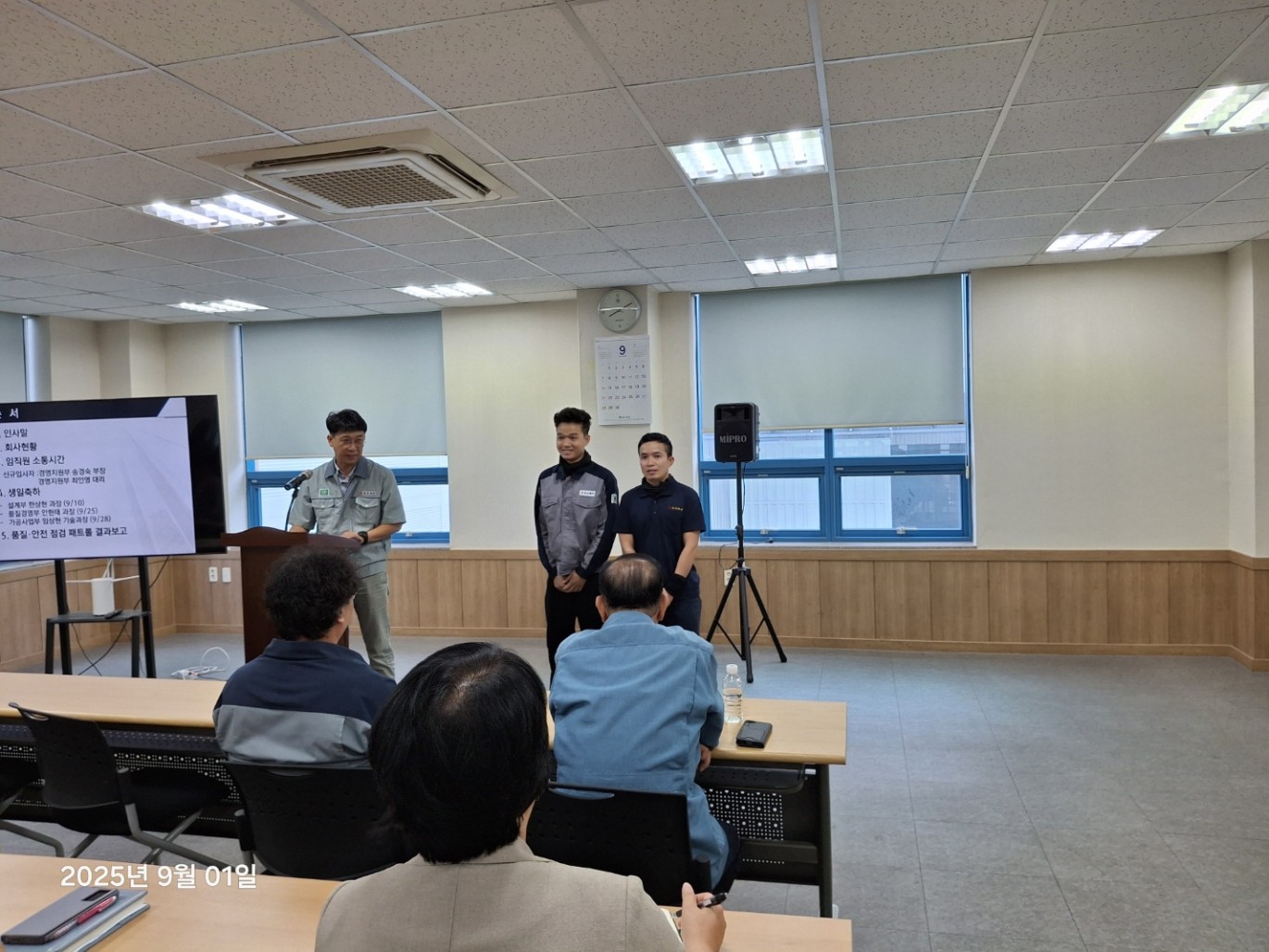 9월 월례조회 페이지 정보 작성자 Admin 작성일25-07-04 13:34 이전글 다음글 목록 본문 <행사순>1. 인사말 2. 회사현황 3. 신규입사자 소개4. 생일축하5. 품질, 안전 점검 패트롤 결과보고 이전글 다음글 목록