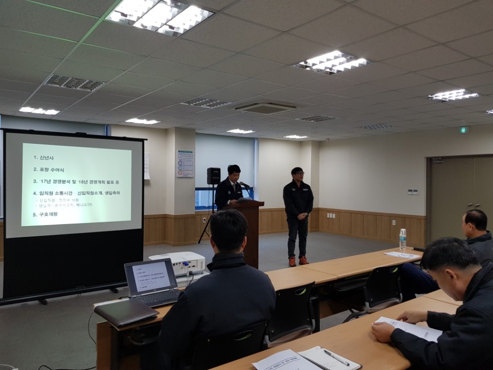 시무식 행사 페이지 정보 작성자 Admin 작성일18-01-02 21:09 이전글 다음글 목록 본문 <행사순>1. 신년사 2. 표창수여식 3. 전년도 경영분석 및 올해 경영목표4. 임직원소통시간 - 신입직원소개, 생일자 축하5. 신 구호제창 이전글 다음글 목록