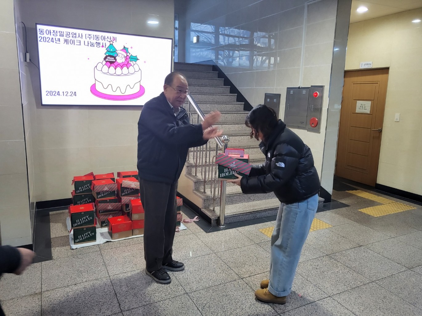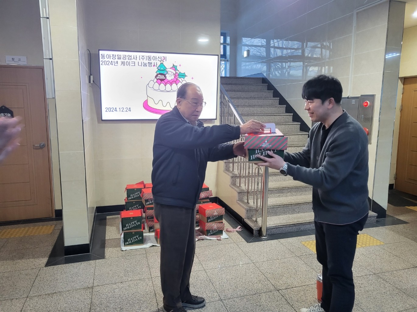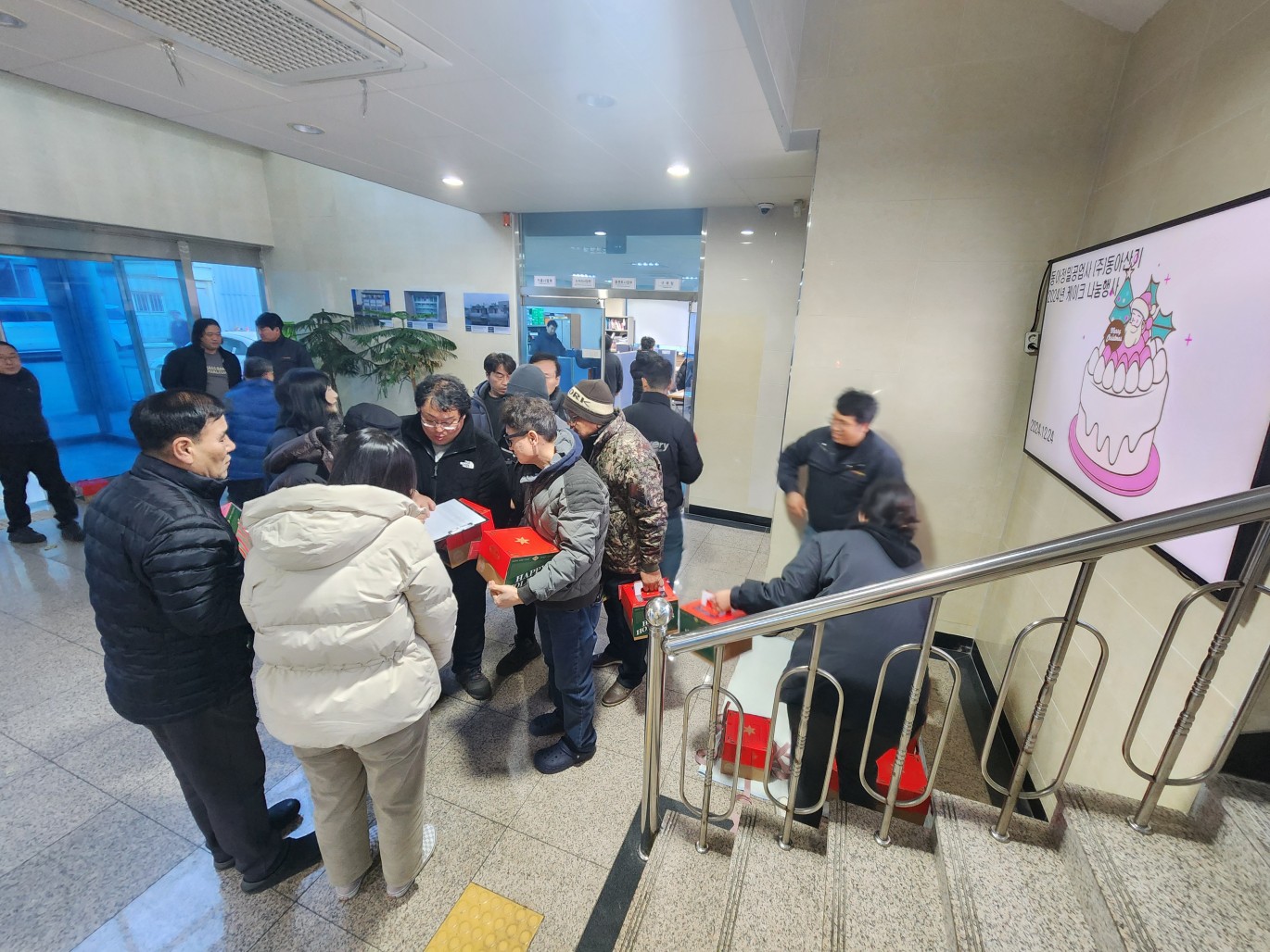 2024년 성탄케이크 선물행사 페이지 정보 작성자 Admin 작성일24-12-27 14:10 이전글 다음글 목록 본문 성탄케이크 선물행사2024. 12. 24.(화)크리스마스 & 연말을 가족과 함께 행복한 시간을 가질수 있도록 임직원들께 케이크를 선물한 행사 이전글 다음글 목록