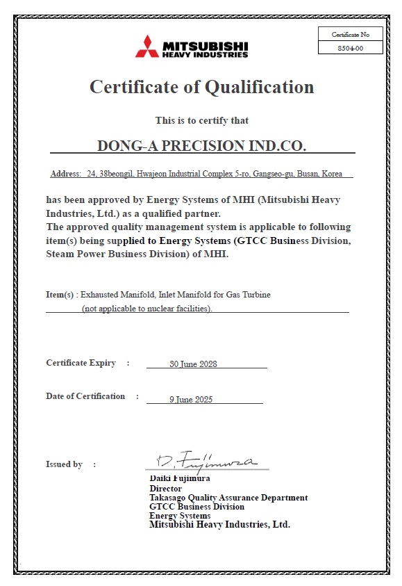 MHI 품질 파트너 자격인증
