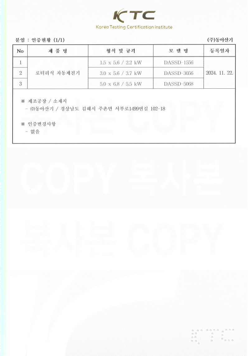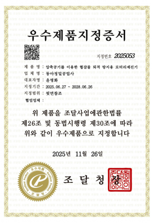 우수제품 지정증서_동아산기