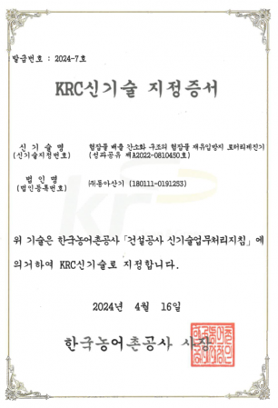 KRC신기술 지정증서
