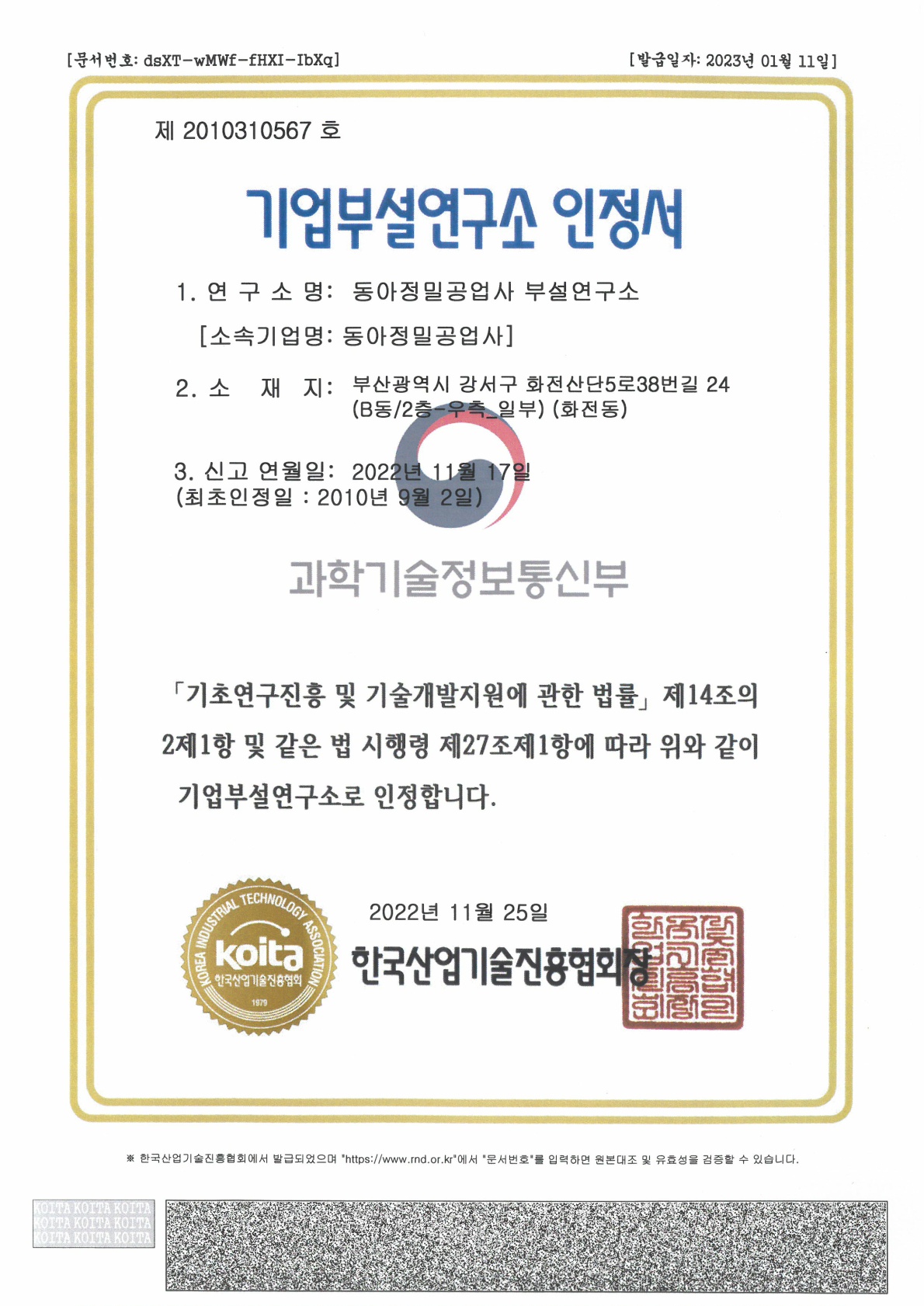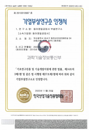 기자재공급유자격등록증(취수설비 CENTER FLOW TYPE)