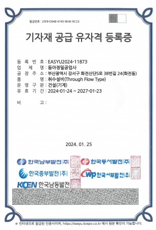 기자재공급유자격등록증(취수설비 THROUGH FLOW TYPE)