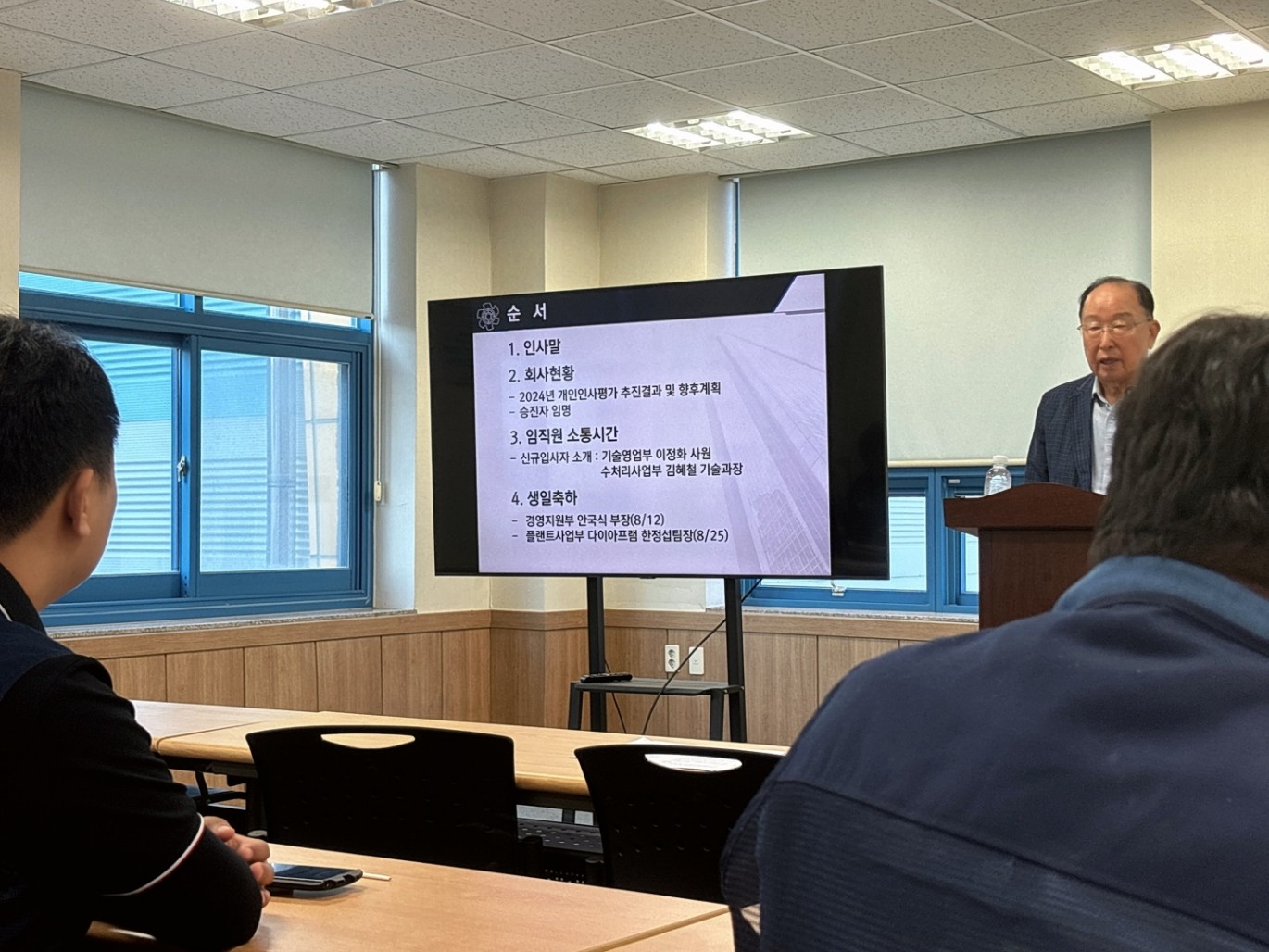 2024년 진급자 임명식 페이지 정보 작성자 Admin 작성일24-08-13 15:57 이전글 다음글 목록 본문 <행사순>1. 인사말2. 회사현황 - 2024년 개인인사평가 추진결과 및 향후계획- 승진자 임명 3. 임직원 소통시간- 신규 입사자 소개 4. 생일축하 이전글 다음글 목록