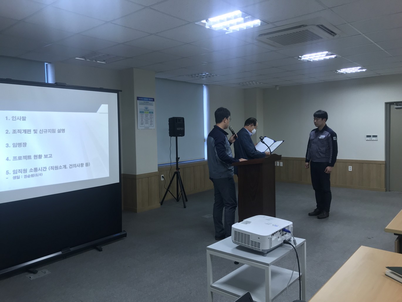 6월 월례조회 페이지 정보 작성자 Admin 작성일20-06-02 08:37 이전글 다음글 목록 본문 <행사순>1. 조직개편 및 신규지침 설명2. 임명장 수여 3. 임직원 소통시간 - 신입직원 소개, 생일자 축하 이전글 다음글 목록